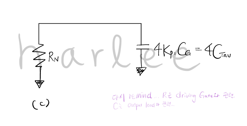 (c) 는 RC delay 계산 측면에서 (a)와 equivalent circuit이다.