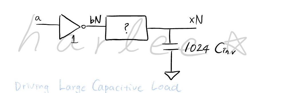 위 그림처럼 unit size inverter 한 개가 fan-out 1024의 아주 큰 로드를 구동해야하는 상황을 가정해본다.