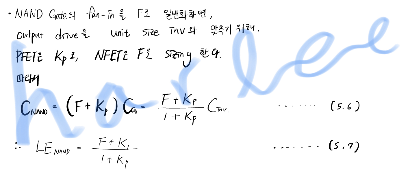 이렇게 unit-size inverter와 동일한 output drive대비 증가한 input capacitance의 증가율을 Logical Effort라고 한다.
