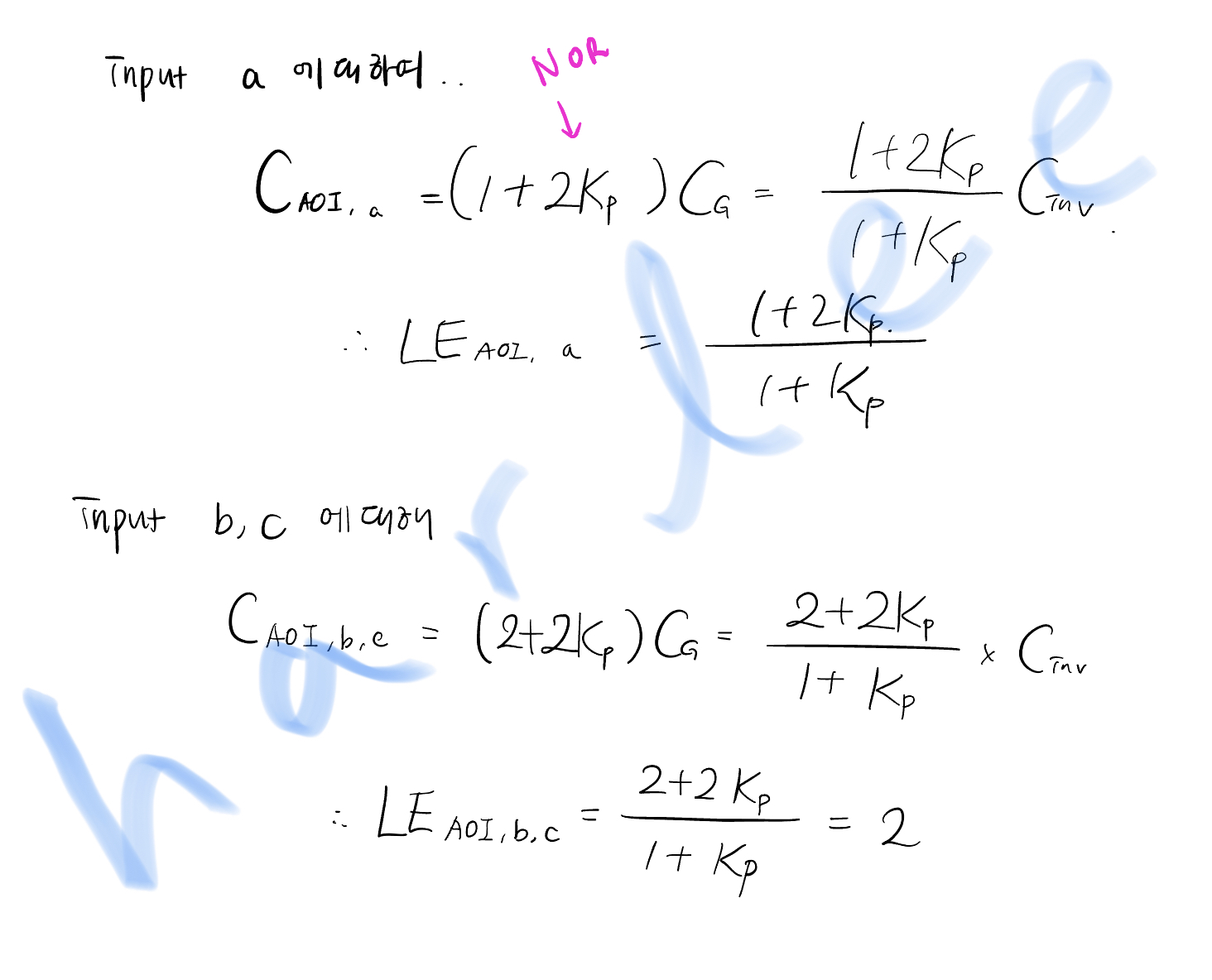 이렇게 사이즈를 맞춰놓고, fan-in의 영향에 대해서만 증가한 딜레이를 구하는 것이다.