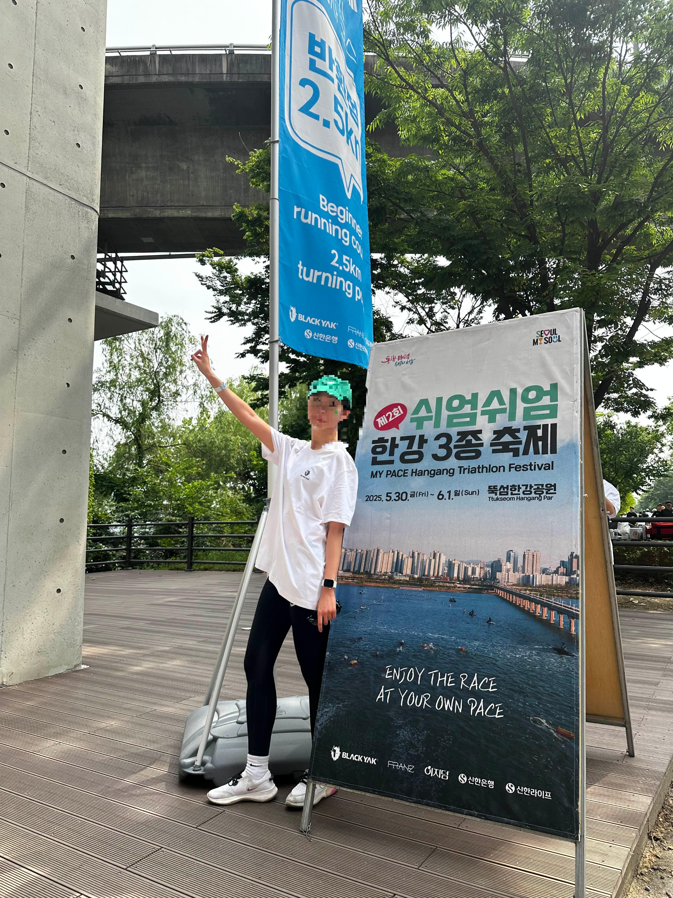 처음에는 한강물이 더럽게 느껴져서 일부로 야외수영장 코스로 한 건데