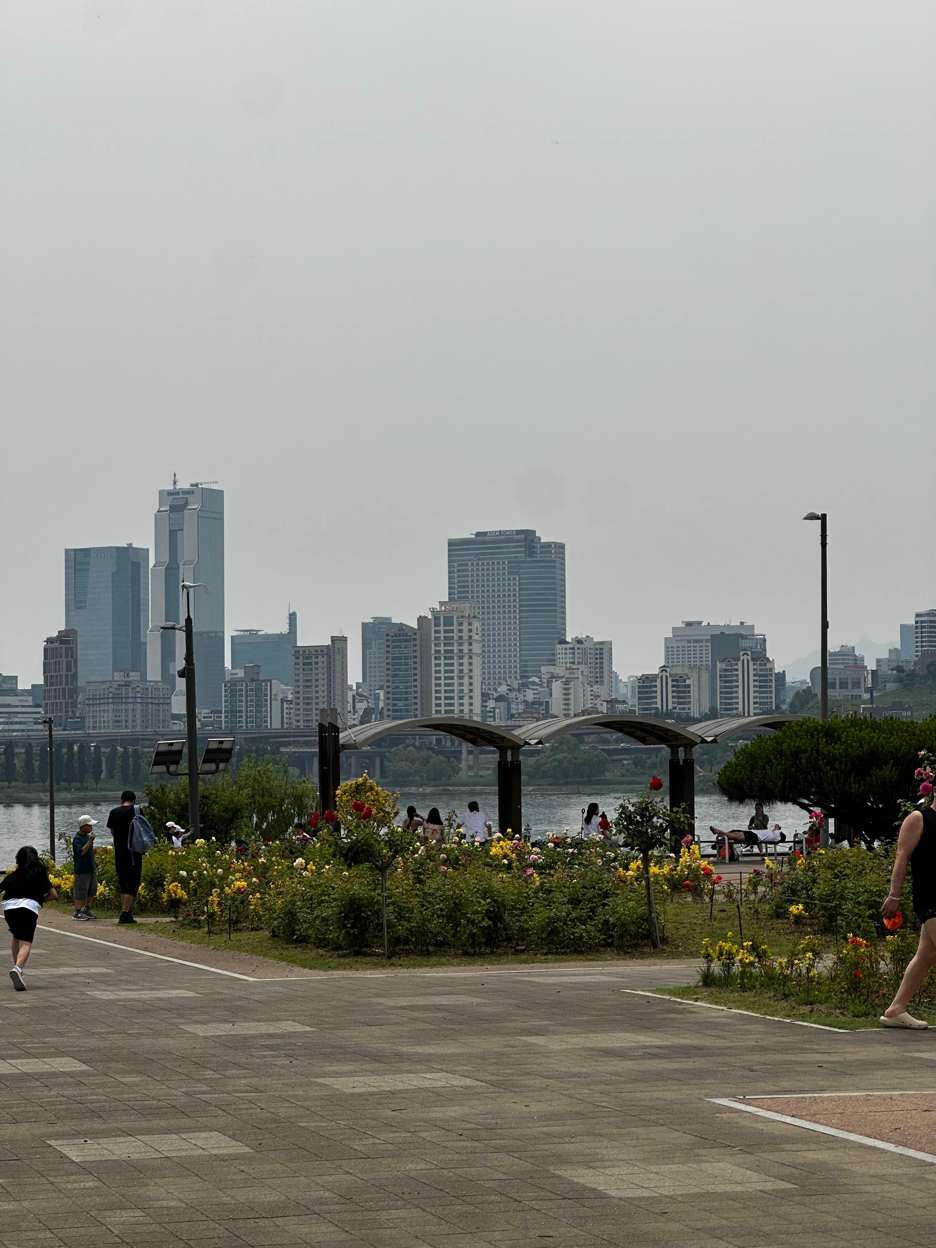 저희는 다른 주차 스팟에 주차를 할 계획이었지만, 한강 주차장으로 가는 길에 갇혀버렸답니다. . . ?